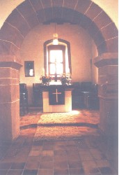 Der Peststein befindet sich im Innenraum der Kirche und erinnert an die Pest in Bullau zur Zeit nach dem 30jährigen Krieg.